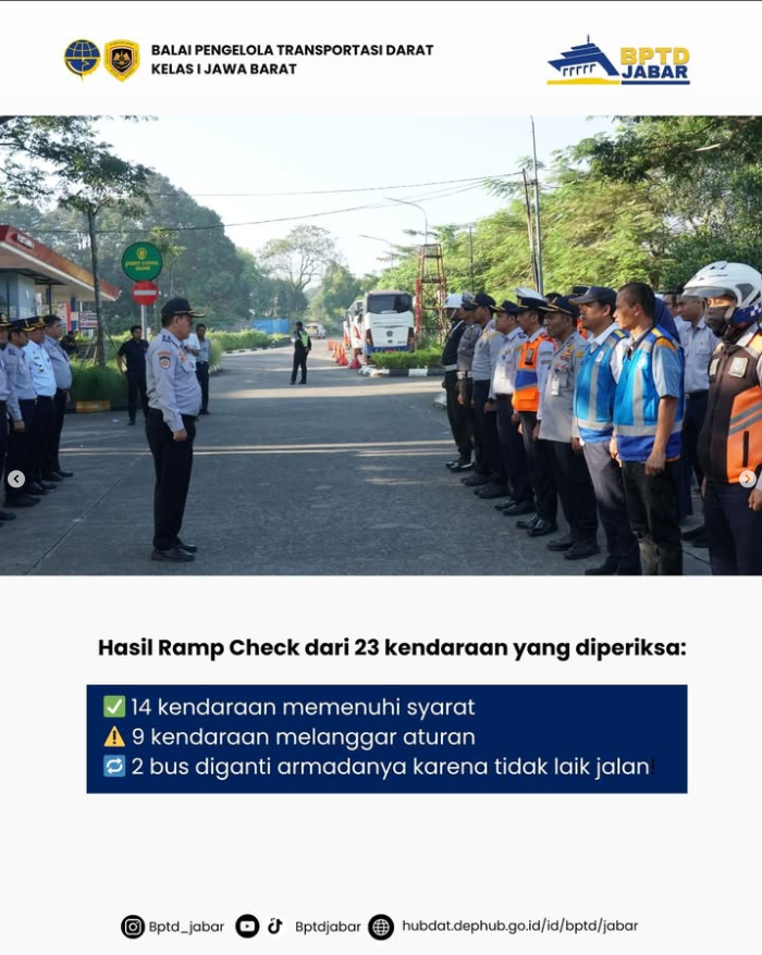 Dari 23 kendaraan yang diperiksa, sebagian besar telah memenuhi aspek administrasi dan teknis. Namun, masih ditemukan kendaraan yang tidak laik jalan, bahkan beberapa di antaranya menggunakan dokumen palsu. Dua kendaraan dinyatakan harus berhenti beroperasi dan langsung digantikan dengan armada cadangan oleh Ditjen Hubdat demi menjamin keselamatan penumpang.