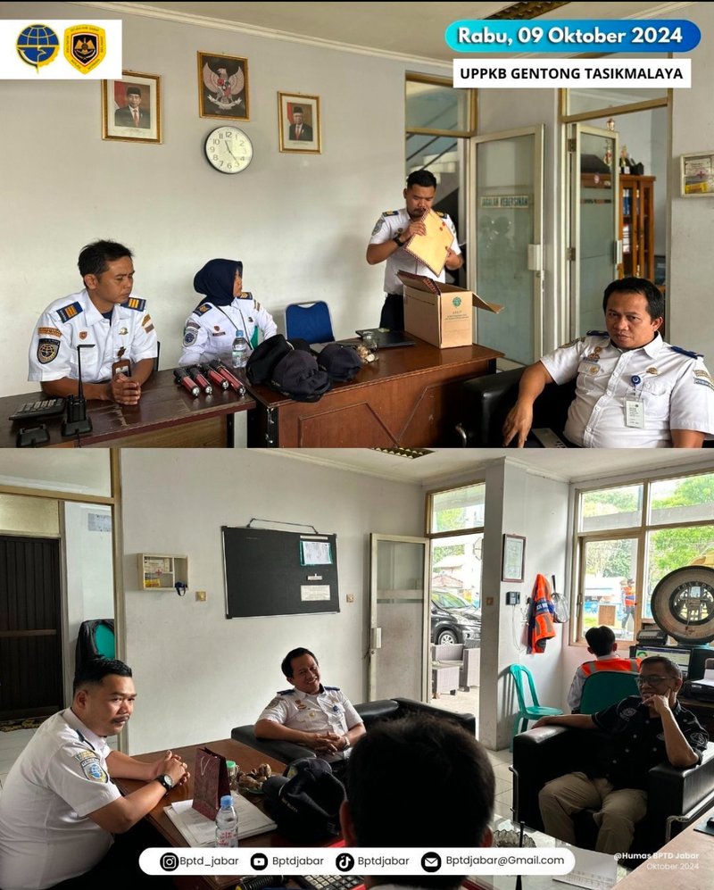 Pada hari Rabu & Kamis, 9-10 Oktober 2024, Kepala Subbagian Tata Usaha BPTD Kelas II Jawa Barat melaksanakan kegiatan Monitoring dan Evaluasi (Monev) terhadap pegawai di Satuan Pelayanan UPPKB Gentong & Satpel SDP Panjalu. Kegiatan ini bertujuan untuk meningkatkan kinerja dan profesionalisme tim, serta memastikan pelayanan kepada masyarakat berjalan dengan optimal.