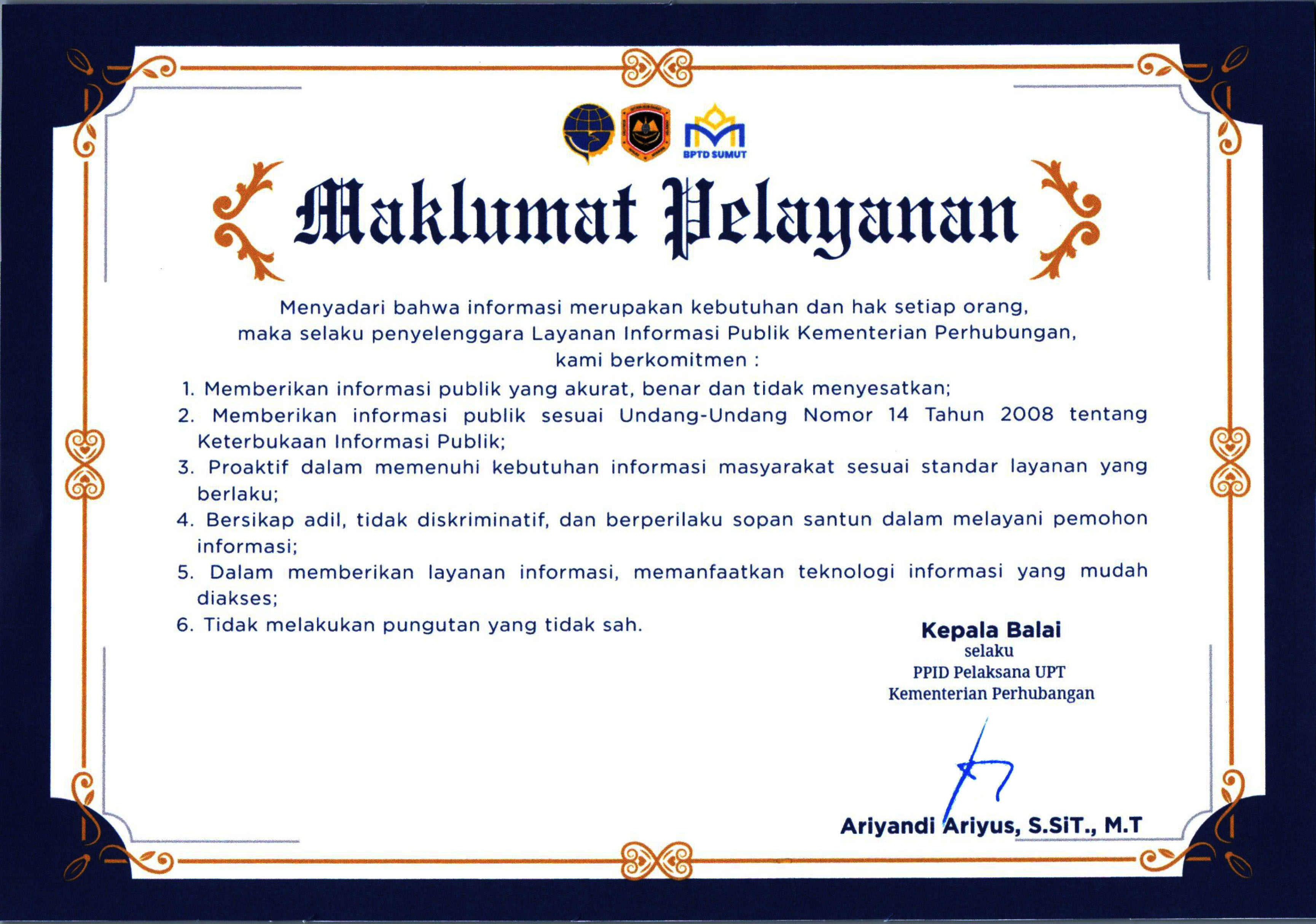 Penanggung Jawab Pembuatan Informasi | : PPID BPTD Kelas II Sumatera Utara |
